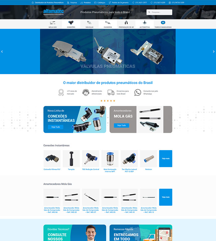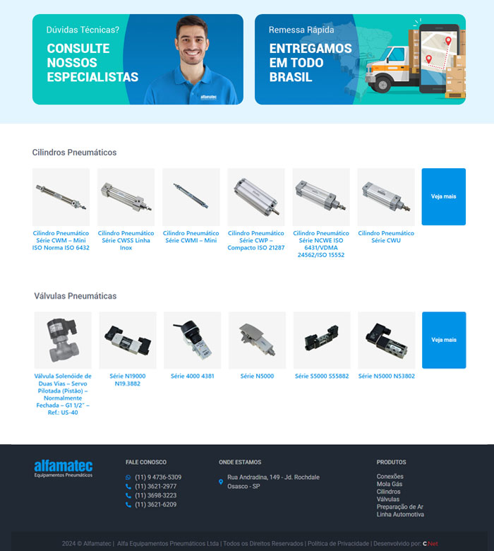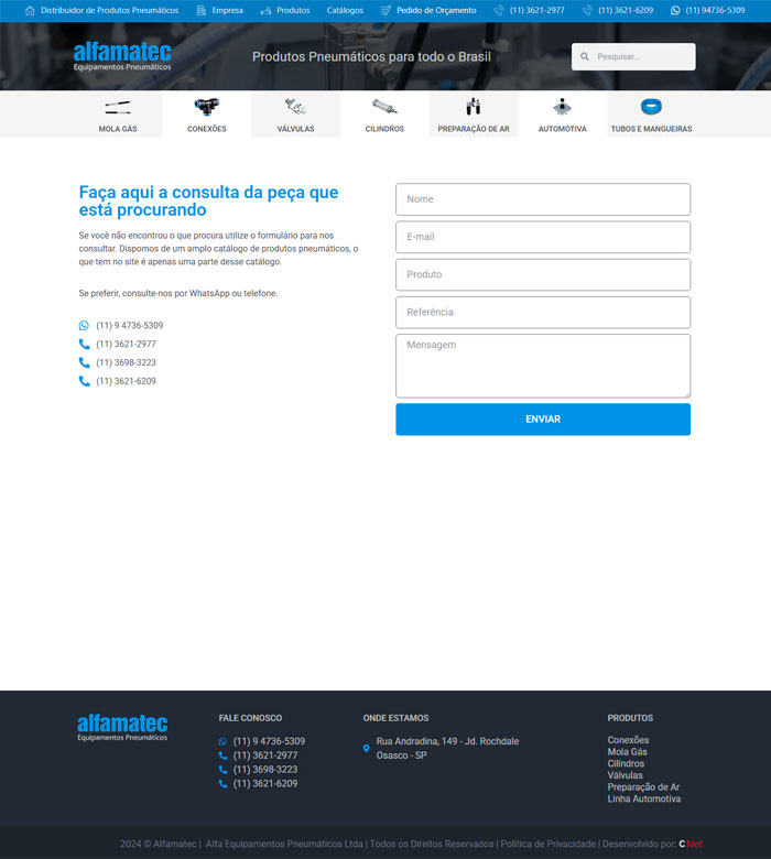 Site para captação de novos clientes através de campanhas de anúncios no Google. Organizado com páginas de categorias e especificações de cada produto, além de conter formulário de pedido de orçamento que preenche automaticamente os dados do produto e de onde o visitante estava no momento de envio do pedido, facilitando assim uma comunicação mais precisa e eficiente da equipe de vendas.